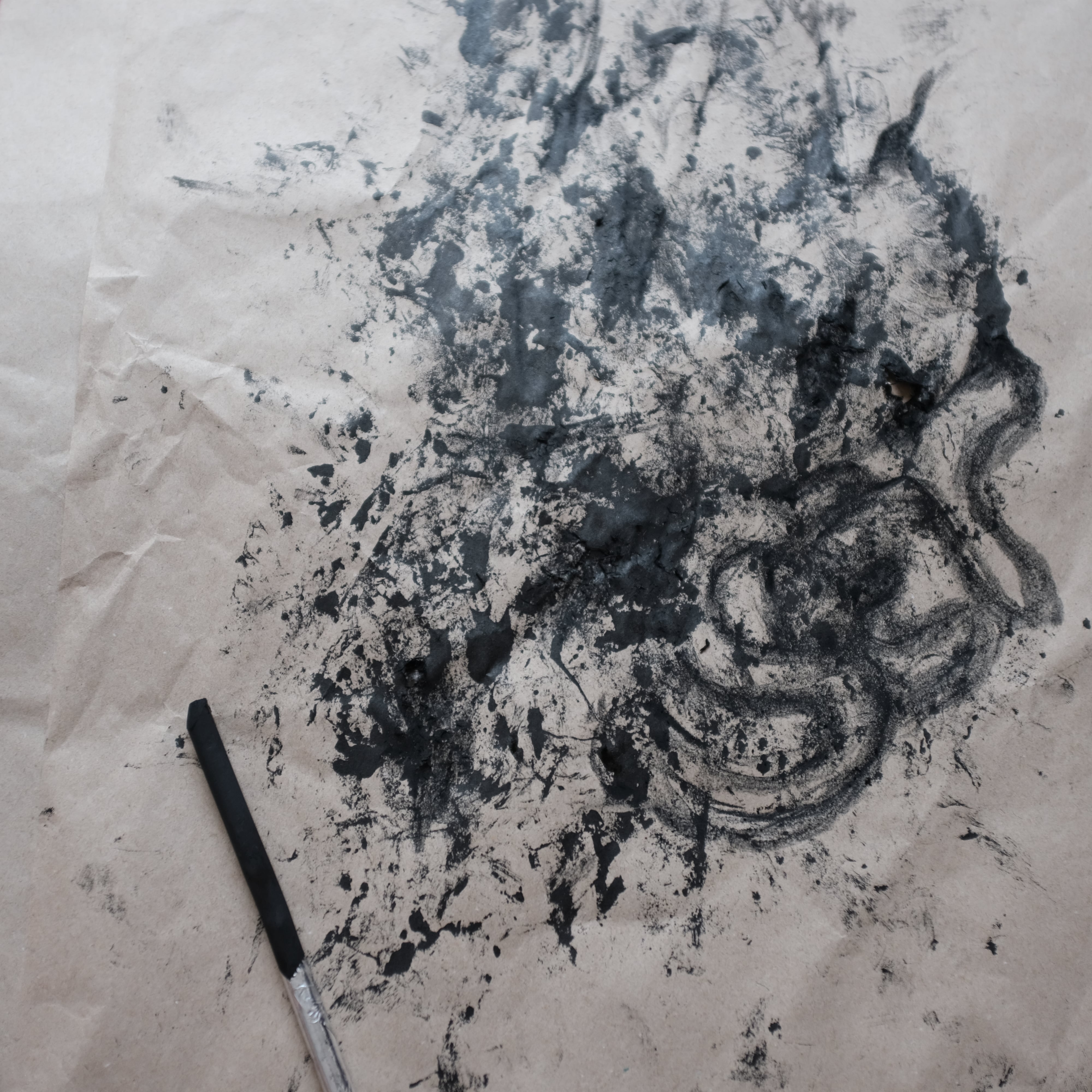墨で制作。作者お気に入りの一枚。 額装込み320mm x 440mm すべて一点しかないものです。 作者サイン入りでお送りいたします。